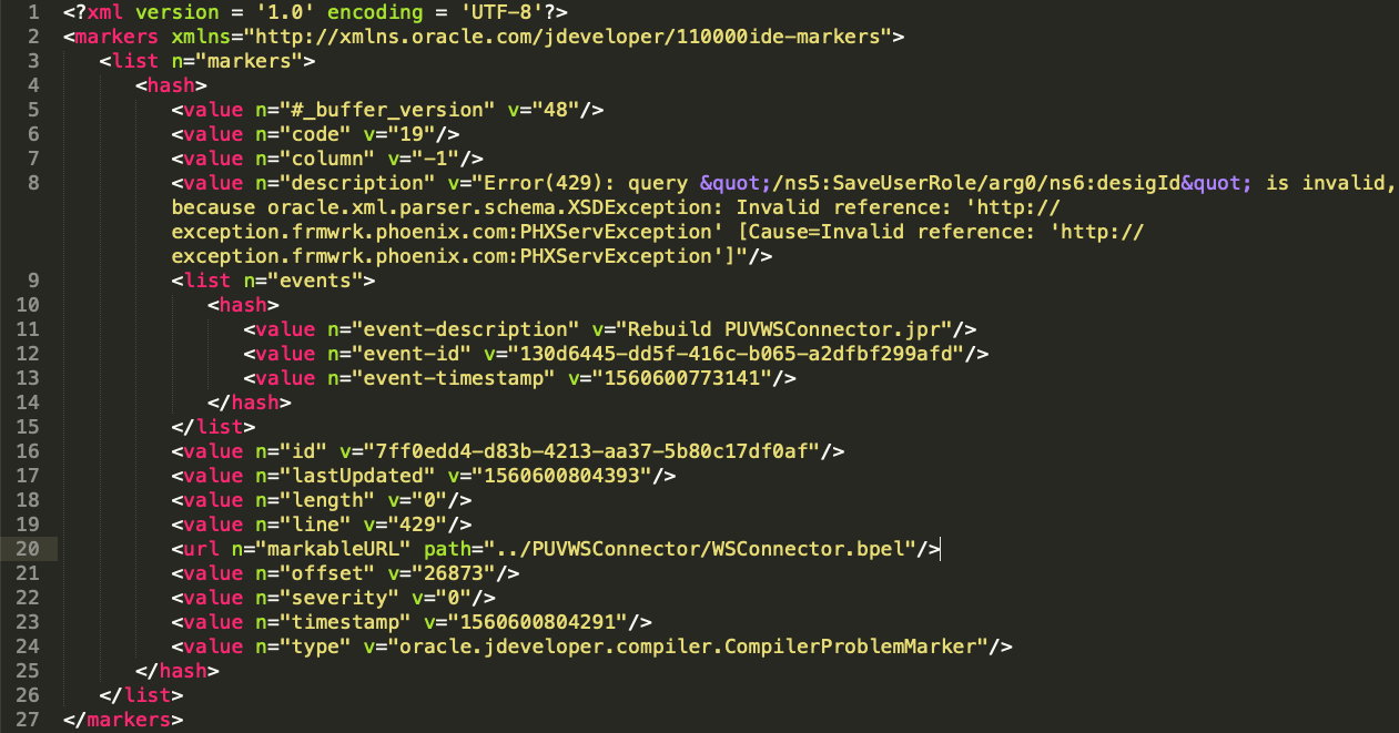 If I keep both import and elements as part of one schema then composite.xml is recognizing the elements. As shown in above digram the PHXServletException element should be moved to corresponding import and schema. Ref- https://www.databaseusers.com/article/6076482/Invoking+external+service%3A+Getting+%27Invalid+reference%27+build+error